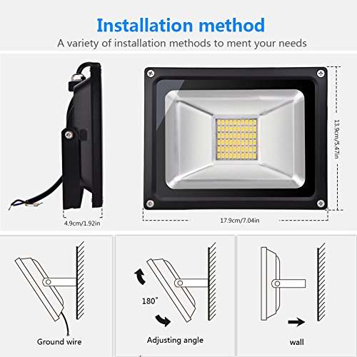 ☛【Ultradünnes Design】 Der Lampenschirm nimmt überlegene optische Linse und Premium-wasserdichten Chip, ultra-dünnen Design speichert mehr Orte und es kann besser in die architektonische Landschaft integrieren, perfekt die Anwendungsumgebung mischen.LED Flutlicht bieten eine viel höhere Helligkeit als traditionelles Licht Glühbirnen, und Sie können immer noch bis zu 80% Strom sparen. • ☛【Ultradünnes Design】 Der Lampenschirm nimmt überlegene optische Linse und Premium-wasserdichten Chip, ultra-dünnen Design speichert mehr Orte und es kann besser in die architektonische Landschaft integrieren, perfekt die Anwendungsumgebung mischen.LED Flutlicht bieten eine viel höhere Helligkeit als traditionelles Licht Glühbirnen, und Sie können immer noch bis zu 80% Strom sparen. • ☛【Ausgezeichnete Wärmeableitung】Das Scheinwerfer nimmt hocheffiziente Aluminium, bietet perfekte Schlagzähigkeit und hervorragende Wärmeableitung, und das Design der Konvektion für thermische Linie bietet eine bessere Wärmeableitung, verlängert die Lebensdauer der Lampen. • ☛【Wasserdicht IP65】 Mit Schutzklasse IP65 ist LED Fluter geeignet für Innen- und Außenbeleuchtung. Er kann bei Regen, Schnee, Kälte oder Hitze betrieben werden. Einfach überall perfekt, wo Beleuchtung gebraucht wie Hinterhof, Einfahrt, Garage, Treppenhaus, Garten usw. • ☛【Weit verbreitete Anwendung】 Das LED Strahler ist mit verstellbaren Metallbügel ausgestattet, kann es in die Decke, Wände, Boden und andere Orte installiert werden, indem Sie den Winkel einstellen. Es eignet sich für Innen- und Außenbeleuchtung wie Gärten, Plätze, Poster, Fabriken, Docklands, Stadien und andere Orte, an denen Beleuchtung benötigt wird.