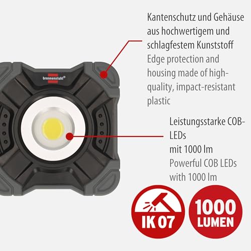 Brennenstuhl Akku LED Arbeitsstrahler SH 1000 MAC (1000lm, IP54, Akku LED Arbeitsleuchte mit Magnet und Karabinerring, robustes Gehäuse)