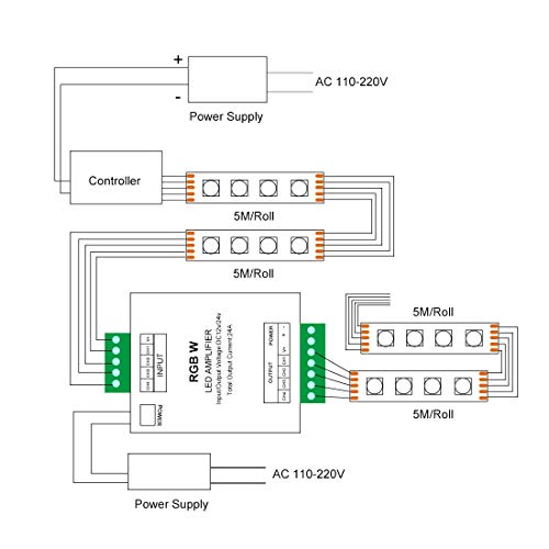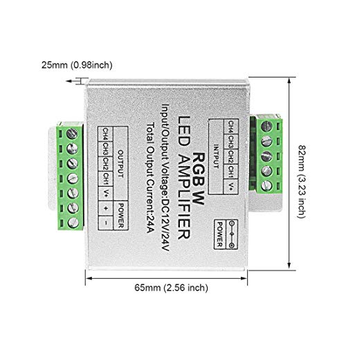 【Wird für RGB / RGBW-LED-Streifen verwendet】Verwendet für: DC12V 4 Pin 5050 RGB, DC12V 5 Pin RGBW LED-Streifen, DC24V 4 Pin 5050 RGB, DC24V 5 Pin RGBW LED-Streifen. Der Verstärker ist eine gemeinsame Anode. • 【Erweitert das RGBW-Signal】Es erweitert das RGBW-Signal. Verwenden Sie für Ihr RGBW-LED-Streifenprojekt einen Verstärker pro 10m. • 【Für monochromatische Farb-LEDs】Dies wird normalerweise für RGBW-LED-Leuchten verwendet, aber Sie können es auch für monochromatische / einfache Farb-LED verwenden (Anschließen jeder Farbe am Zoll-Kanal). • 【DC 12V / 24V Netzteil】In einer Kette können mehrere Verstärker verwendet werden. Sie können DC12V24A für den Verstärker verwenden, wenn Sie den DC12V RGBW / RGB-LED-Streifen steuern. Verwendung von DC24V24A für den DC24V RGBW / RGB-LED-Streifen. • 【Für Ihren LED-Streifen】Leistungsstarke Funktionen und geringe Größe. Es ist der beste Partner für Ihre LED-Streifen. Hinzufügen von Spannung für den LED-Streifen.