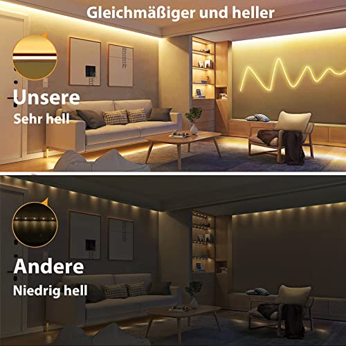 【Flexibles LED Neon licht für DIY】 Dieser 3000K warmweiße Neon LED Streifen besteht aus hochwertigem Silikonmaterial und ist flexibler und wasserdichter als herkömmliche PVC Beschichtungen. Dies ist ein schneidbares flexibles LED Neonlicht. Silikon Neon LED Streifen sind flexibler genug, um die Form wie ein kommerzielles Lichtschild, ein Dachfenster usw. zu biegen • 【Berührbarer dimmbarer Controller】 Der led strip warmweiss wird mit Netzteil und verbessertem Touch-Dimmer zum Einstellen der Helligkeit geliefert. Drücken Sie lange auf den Dimmer, um die Helligkeit einzustellen Dimmen auf hell), und drücken Sie kurz, um ein- / auszuschalten. Sie können die Helligkeitsstufe von 10%-100% an Ihre Bedürfnisse anpassen, keine lästigen Remote-Reset-Schritte mehr • 【Wasserdicht, sicher und lange Lebensdauer】 Der 12V LED Streifen wird mit einer niedrigen Spannung betrieben, was bedeutet, dass er sehr wenig Wärme erzeugt. Die verbesserte Silikonversion ist hitzebeständig, was Ihre Sicherheit und die längere Lebensdauer Ihrer Lichtleiste gewährleistet. Die wasserdichte IP65-Funktion ermöglicht die Verwendung im Wasser/Pool/im Freien an regnerischen Tagen • 【Langlebig und hochwertig】Der warmweiße led leuchtband besteht aus langlebigen Komponenten für Beleuchtung und Dekoration. Es kann nicht nur Ihre Anforderungen an starkes Licht erfüllen, sondern auch Ihre Augen besser schützen. Dies ist ideal für Schlafzimmer, Küchen, Kleiderschränke, Innen- oder Außendekoration • 【Weit verbreitet】Der 6.56 Ft/2m 3000K dimmbare Lichtstreifen eignet sich für Küchenschrankbeleuchtung, Eitelkeitsbeleuchtung, TV-Hintergrundbeleuchtung, Flur, Wohnzimmer, Treppenhaus, Bar, Schaufenster, Bücherregal, Vitrine, Speisekammer, Werkbank beleuchten ein Bierschild und fast überall
