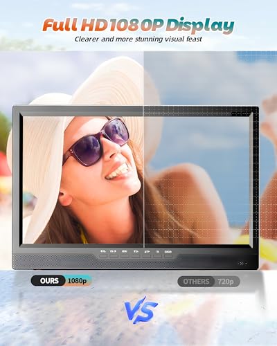 Startseite » Produkte » DESOBRY 19-Zoll Fernseher mit Batterie, 1080p Tragbarer Kleiner Fernseher DVB-T2 mit Antenne, 12V TV mit Verstellbarer Basis für Home Entertainment, Reisen und Outdoor-Einsatz, HDMI AV USB
