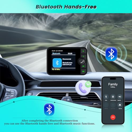 Hikity Tragbarer Dab Adapter für Android Autoradio mit 2,4-Zoll-LCD-Display, kleiner Digitalradio-Adapter mit Freisprecheinrichtung, Bluetooth, AUX-in, FM-Transmitter, Dab Digitales Radio