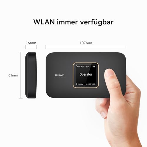 [Exzellente Hochgeschwindigkeitsverbindung]: mit dem HUAWEI Mobile WLAN Router erhältst du eine Download-Geschwindigkeit von bis zu 300 Mbit/s und eine Upload-Geschwindigkeit von 100 Mbit/s, Streame HD-Videos und Spiele ruckelfrei und lade Dokumente im Handumdrehen herunter. • [Das Dual-Band-WLAN kann bis zu 32 Geräte verbinden]: Das 5-GHz-Signal bleibt auch bei Störungen stark, während das 2,4-GHz-WLAN eine größere Reichweite bietet, Schnelles, stabiles WLAN für deine Familie und Freunde. • [Mobiles WLAN, wo immer du es brauchst]: HUAWEI 4G mobile WiFi 3 ist ungefähr so breit und lang wie eine Kreditkarte, Wenn du es in der Tasche trägst und eine SIM-Karte einlegst, kannst du das Hochgeschwindigkeitsnetz unterwegs nutzen, Die Kompatibilität der SIM-Karte wurde in jahrelangen Feldtests für über 100 Länder nachgewiesen. • [Verwalte dein mobiles Netzwerk mühelos über dein Telefon]: mit der HUAWEI AI Life-App kannst du eine digitale, intelligente Verwaltung nutzen, darunter Einstellungen für den Datenverkehr, Gast-WLAN, Netzwerksicherheit usw. • [Akku für den ganzen Tag]: HUAWEI 4G Mobile WiFi 3 wird den ganzen Tag über mit Strom versorgt, Dank des hochwertigen 3000 mAh Akkus ist eine Dauerbetriebszeit von bis zu 12 Stunden gegeben. • [Produkt-Garantie]: 24 Monate Produktgarantie + 6 Monate verlängerte AMZ-Garantie.