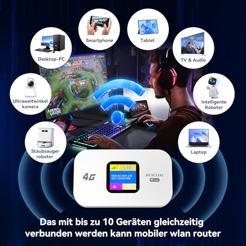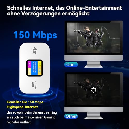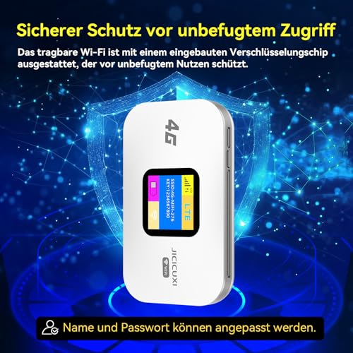 JICICUXI 4G Mobiler WLAN Router,tragbares WLAN für unterwegs ohne Vertrag, LTE 150 Mbps,2100mAh -Lange Akkulaufzeit, LCD Display,Einfache Einrichtung ,Mobiler Hotspot für Reisen, Camping, Hotels