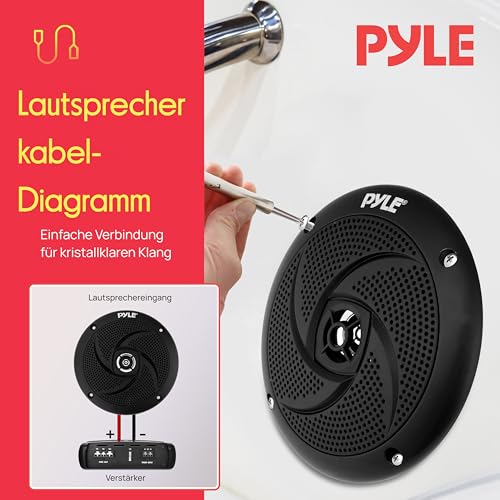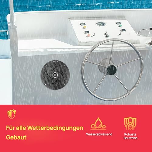 Pyle Lautsprecher Wasserdicht, Marine Lautsprecher, Outdoor Lautsprecher, 180 Watts- Einbaulautsprecher, für Badezimmer, Spa Raum, Boot, UTV, ATV, RV Auto & Golf Cart, Paar- Flacher Lautsprecher, 13cm