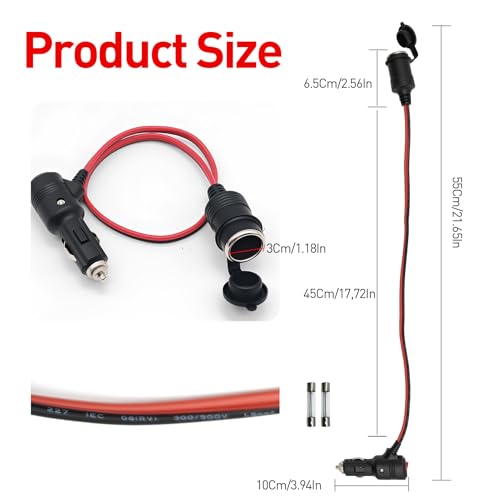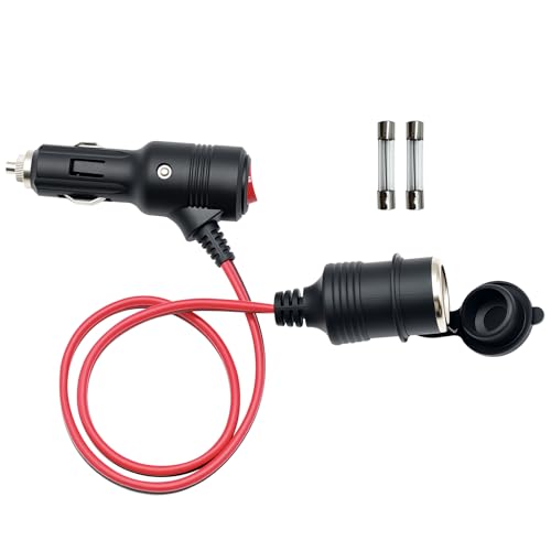 KFZ Verlängerungskabel 12V, 0.5M Zigarettenanzünder mit Sicherung und Schalter für 10A 12V-24V Camping Kühlbox Auto Motorrad Strom LKW Lieferwagen Wohnmobil Geräte