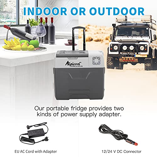 Alpicool CX40 40L Kompressor Kühlbox 12V tragbarer Kühlschrank elektrische Gefrierbox klein Gefrierschrank für Auto camping, Lkw, Boot und Steckdose mit USB-Anschluss, Teleskopstange Rad