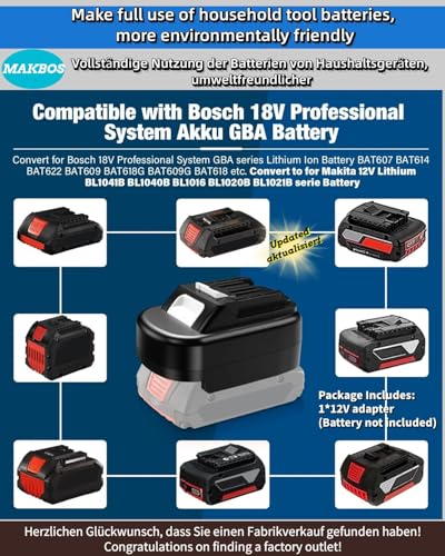 für Bosch 18V zu für Makita 12V AkkuAdapter,Batterieadapter kompatibel für Bosch 18V GBA Akku umwandeln zu für Makita12V Akku,für Makita12V Akku Elektrowerkzeuge