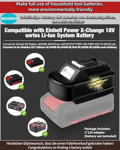 für Makita12V Akku Elektrowerkzeuge,für Einhell18V zu für Makita 12V AkkuAdapter,Batterieadapter kompatibel für Einhell 18V Akku umwandeln zu für Makita12V Akku