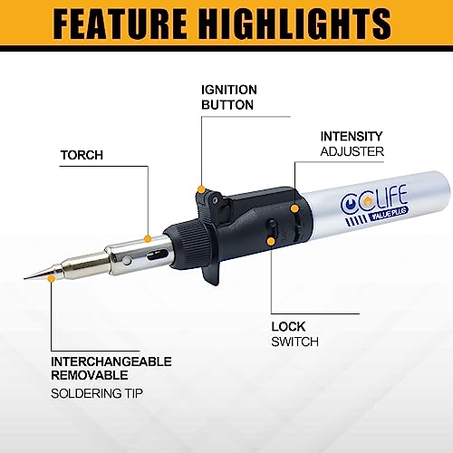CCLIFE lötkolben set gaslötkolben 13er butan lötkolben mit flussmittel Lötdraht Löt-Set zum Löten, Heißschneiden, Schweißen, Brandmalerei, Holz Gravieren, Schmuckherstellung (Upgrade)