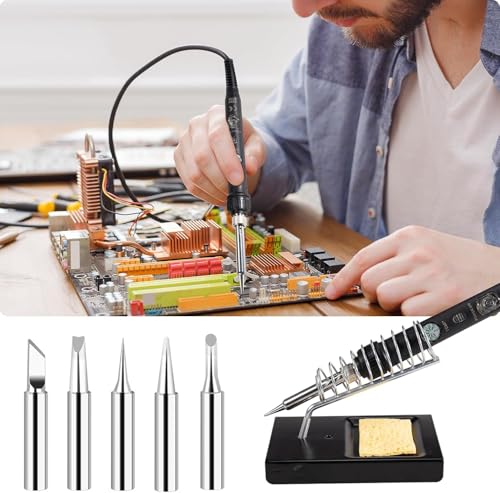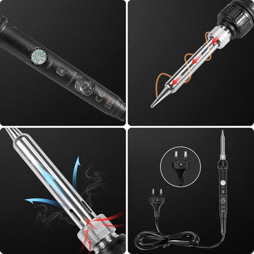 - Vorteile: schnelles Aufheizen (ca. 20 s), genaue Temperaturregelung 220-480 °C, Ein/Aus-Schalter und hitzebeständiger Griff, 18-in-1-Set inkl. Entlötpumpe und 5 Lötspitzen.