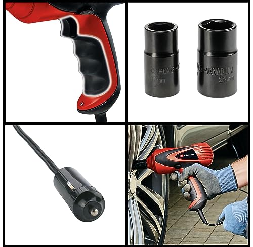 Der Einhell Kfz-Schlagschrauber CC-HS 12/1 ist ein leistungsfähiger 12 Volt-Schlagschrauber mit Rechts-/Linkslauf für das schnelle Wechseln von Kfz-Reifen – dank dem 12 V-Anschlusskabel auch unterwegs • Der Kfz-Schlagschrauber CC-HS 12/1 wird über den Zigarettenanzünder an das 12 V-Bordnetz von Fahrzeugen angeschlossen und kann somit auch unterwegs zum Reifenwechsel eingesetzt werden. • Eine integrierte LED-Diode zum Ausleuchten des Arbeitsbereiches gewährt einen klaren Blick auf das Arbeitsfeld, die integrierte Wasserwaage sorgt für die optimale Position beim Schrauben. • Der Schlagschrauber wird komplett mit zwei Stecknüssen mit jeweils 17/19 bzw. 21/23 mm in einem Kunststoffkoffer zur Aufbewahrung von Schrauber und Zubehör geliefert.