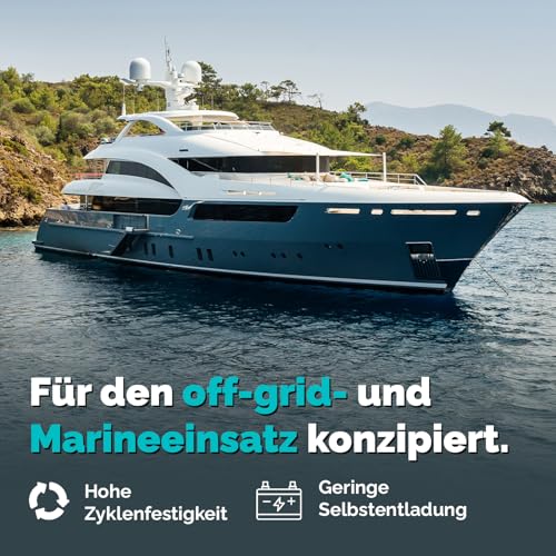 Zuverlässige AGM-Technologie – Wartungsfreie AGM Batterie mit 100Ah und 12V für stabile Energieversorgung in Wohnmobil, Boot, Wohnwagen oder Solaranlage • Ideal für Solaranlagen – Leistungsstarke Solarbatterie mit hoher Zyklenfestigkeit für den Einsatz als Versorgungsbatterie im Camping- und Outdoor-Bereich. • Lange Lebensdauer & Deep Cycle – Deep-Cycle-Technologie ermöglicht bis zu 1000 Ladezyklen bei gleichbleibender Leistung – ideal für Dauerbetrieb. • Vielseitig einsetzbar – Perfekt als Mover Batterie, Bootsbatterie oder Batterie für Wohnwagen, Wohnmobil und Offgrid-Systeme • Sicher & auslaufsicher – Geschlossene, ventilgeregelte Batterie mit VdS-zertifizierter Bauweise – kein Austreten von Säure, kein Nachfüllen nötig.