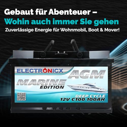 AGM Batterie 100Ah 12V – Solarbatterie für Wohnmobil, Wohnwagen, Boot, Mover – Versorgungsbatterie Deep Cycle – Wartungsfrei & Zyklenfest