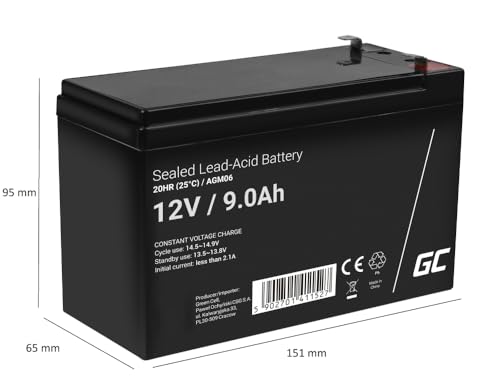 Green Cell AGM 12V 9Ah Akku VRLA Blei-Batterie Bleiakku Ersatzakku Gelakku Akkubatterie Zyklenfest Unbemann UPS, USV, Notstrom, USV-Anlage, UPS -Anlage, Backup-Batterie, Batteriebackup