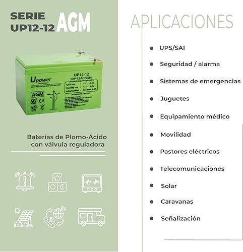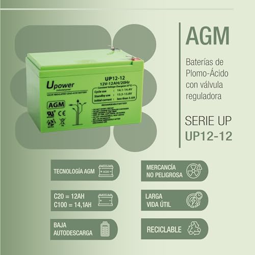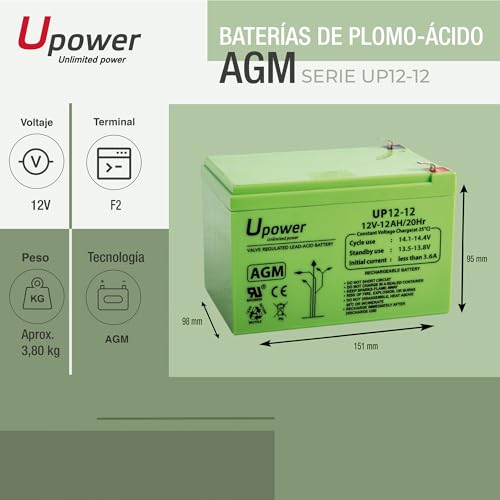 Schreibe die erste Rezension für „U-Power – Hermetische AGM-Blei-Säure-Batterie 12Ah 12V – Akkus Faston F2 6.3mm“