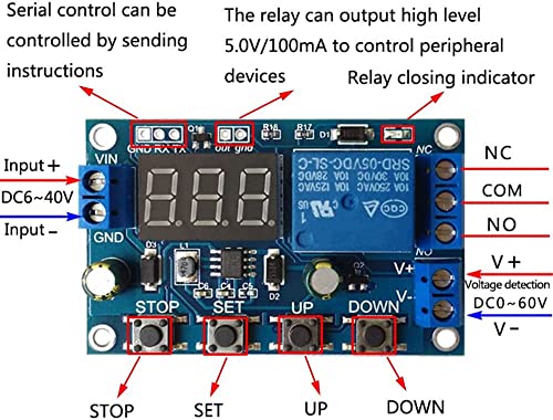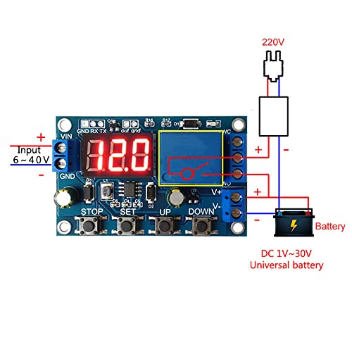 【Serielle Kommunikationsfunktion】Batterie monitor Über die serielle Schnittstelle kann der Arbeitsstatus des Relais in Echtzeit überwacht werden. • 【Lade- und Entladeschutz】Dieser Batteriewächter ist für 6-40V-Batterien geeignet, Sie können Ihren eigenen Lade- oder Entlademodus einstellen, um eine Überentladung der Batterie zu verhindern. • 【Digitalanzeige】Dieses Batterie anzeige Schutzmodul verfügt über eine Digitalanzeige zur Überwachung des Ladestatus. • 【Breite Anwendung】Die batteriemonitor ist weit verbreitet in Sonnenkollektoren, Heimladegeräten, Windturbinen, etc. • 【Funktion der Notfalltaste】Battery guard STOP Taste mit Verpolungsschutzfunktion, Verpolungsschutz verhindert das Entflammen.