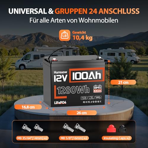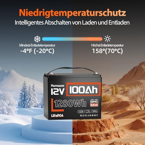Humsienk LiFePO4 100Ah 12V Lithium Batterie mit 100A BMS Tieftemperaturschutz, Max. 15000 Zyklen,1280Wh Lithium Solarbatterie für Wohnmobil, Solar, Boot, 10 Jahre Lebensdauer