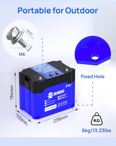 DCHOUSE 12V 50Ah LiFePO4 Bluetooth Batterie with DC & TypeC Ports,mit 75A BMS, Grade A Lithium Batteriezellen, 640Wh Lithium Akku für Trolling Motor, Wohnmobil, Solar, Boot, Off Grid