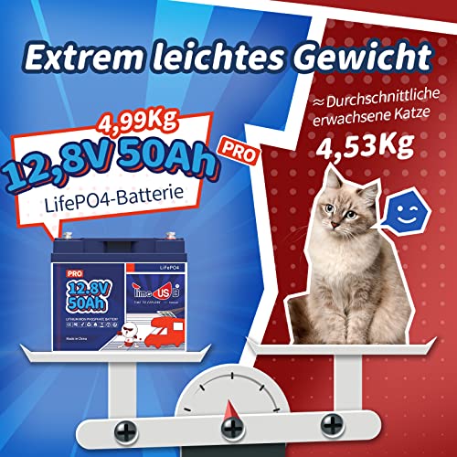 Timeusb 12V 50Ah Pro LiFePO4 Lithium Batterie mit 50A BMS,Max.15000 Zyklen,640Wh LiFePO4 Akku für Wohnmobil,Trolling-Motor,Camping,Solaranlage,Off-Grid