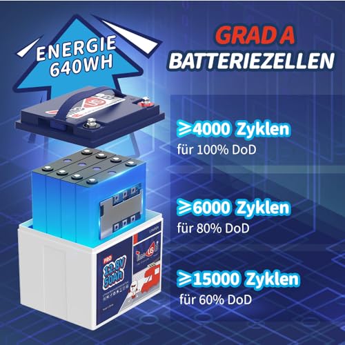 🔋【1 Timeusb LiFePO4 akku 12V 50Ah ersetzt 3 100Ah Blei-Säure-Batterien】 Timeusb LiFePO4 50ah 12V LiFePO4 batterie hat die gleiche nutzbare Kapazität wie 12V 100Ah Blei-Säure Autobatterie (AGM batterie , GEL batterie , etc.), aber ist besser auf allen Ebenen. Mit einer Lebensdauer von 10 Jahren, die 3 Mal länger ist als eine 12V 100Ah Blei-Säure Autobatterie , hat die viel kompaktere und leichtere Timeusb LiFePO4 akku eine zuverlässigere Kapazität und Leistung mit 100% DOD. • 🔋【100% Sicher & Langlebig】Mit 100% Entladetiefe (DOD), 4000 bis 15000+ Lebenszyklen und 10+ Jahren Lebensdauer, im Vergleich zu 50% DOD, 300 bis 500+ Lebenszyklen und 3 Jahren Lebensdauer von Blei-Säure-Batterien, übertrifft die Timeusb LiFePO4 akku 12V 50Ah nicht nur Blei-Säure-Batterien(AGM batterie , GEL batterie , etc.) in Ausdauer und Kapazität, sondern ist auch benutzerfreundlicher mit eingebautem 50A BMS mit fünffachem Schutz und keiner Möglichkeit von gefährlichem Flüssigkeitsaustritt. • 🔋【1/6 Leichter, 1/2 Kleiner】Timeusb LiFePO4 50Ah 12V ist nur ca. 5KG und halb so groß wie eine Gruppe 31 Blei-Säure Autobatterie 100Ah 12V.Mit einem gleichmäßigeren Spannungsniveau während der Entladung ist Timeusb LiFePO4 lithium batterie 12V besser für Ihr System, da sie 2 mal länger als eine Blei-Säure Autobatterie hält. Für die Langlebigkeit Ihres Batteriesystems und eine sorglosere Benutzererfahrung ist die Timeusb LiFePO4 solarbatterie Ihre Wahl. • 🔋【Die neueste zertifizierte massentaugliche Batterietechnologie】 Die Timeusb LiFePO4 Batterie verwendet Zellen der Güteklasse A von Tier-One-Zelllieferanten und wendet die neueste Batterietechnologie an, die allgegenwärtig in öffentlichen Verkehrsmitteln auf der ganzen Welt getestet worden ist. Die Timeusb LiFePO4 akku 12V 50Ah wurde mit sicheren, soliden Komponenten gebaut und hat mehrere EU-Sicherheits- und Qualitätstests bestanden und wird Sie nicht im Stich lassen. • 🔋【Erweiterbare Kapazität 】Flexible und erweiterbare Batterieverbindungen ermöglichen die maximale Batterieverbindung von 4 in Serie und 4 parallel. Max.10,24kWh und Max. 10,24kW für 51,2V 200Ah Batteriesystem mit maximal 16 Einheiten von 12V 50Ah Pro Batterien. Ein flexibles Batteriesystem für alle Arten von unterschiedlichen Speicheranforderungen. Nutzen Sie den Platz und die Energie voll aus, geeignet für Solar- und Off-Gird-Batterien. • 🚫【Wichtige Tipps】① Diese Lithiumbatterie ist eine Energiespeicherbatterie und keine Startbatterie, bitte verwenden Sie sie nicht als Starterbatterie oder in Golfwagen. ② Wenn OT-Klemmen direkt mit Schrauben befestigt werden und ihre Dicke weniger als 2 mm beträgt, fügen Sie bitte zusätzliche Dichtungen hinzu, um eine sichere Befestigung zu gewährleisten und ein Lösen oder Überhitzen zu verhindern. Die gleiche Vorsichtsmaßnahme gilt bei der Verwendung von Klemmen