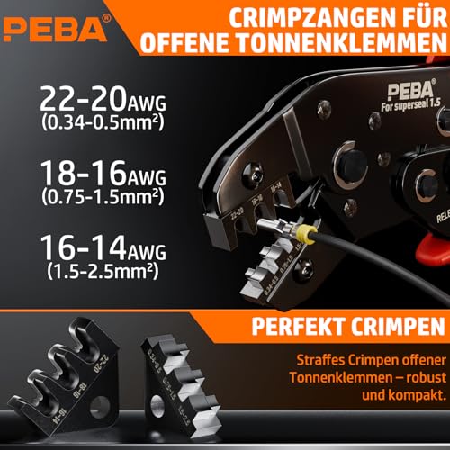 Startseite » Produkte » PEBA Crimpzange Wasserdicht Kfz Stecker Set, Crimpzangen 0.34-2.5mm², 1/2/3/4/5/6 Polig Steckverbinder für Auto und Motorrad,Boot, mit Abisolierzange, Abziehwerkzeug