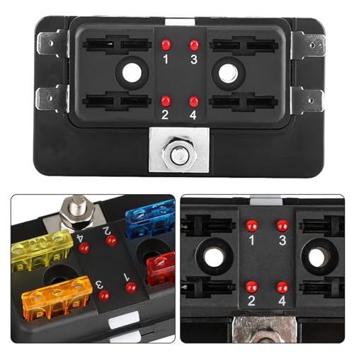 Akozon Sicherungskasten, Halter 4-Wege-Schaufelblockhalter mit LED-Warnleuchten-Kit für Van Van Boat Marine