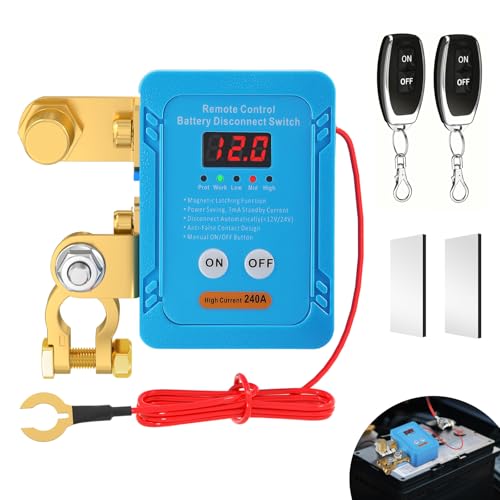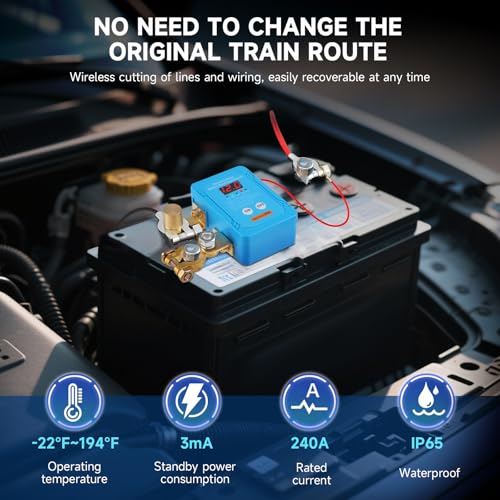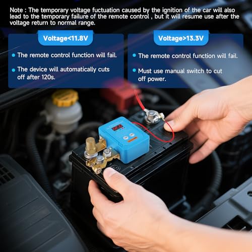 【LED-Spannungsanzeige und Fernbedienung】 Stabile Leistung und einfache Bedienung bis zu 100 m Reichweite • 【Batterietrennschalter】 Verlängert die Batterielebensdauer und spart Strom effektiv • 【Automatische Abschaltung】 Schützt die Batterie bei niedriger Spannung und spart Energie • 【Breite Anwendung】 Geeignet für Autos, Boote, Wohnmobile, LKWs und mehr • 【Stabiler Notausschalter】 Hohe Leistung und Temperaturbeständigkeit für zuverlässigen Einsatz