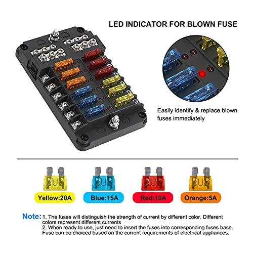 Startseite » Produkte » Kunststoffabdeckung 6 Wege 12 Wege Flachsicherungsblock 12V 32V Sicherungskasten Halter M5 Bolzen mit LED Kontrollleuchte for Auto Car Marine (Color : 12 Ways no Fuse)