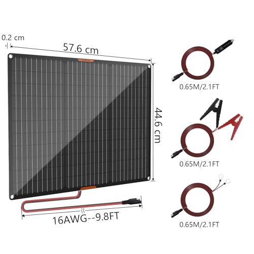 MHPOWOS Solar-Panel 50W 12V Solar-Autobatterie-Ladegerät Maintainer Portable Waterproof Power Solar Trickle Charger für Auto Boot Automotive RV mit Zigarettenanzünder-Stecker & Alligator Clip