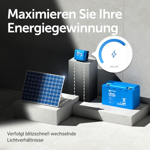 Sind Sie bereit, Ihr Solarsystem auf die nächste Stufe zu heben? Mit einem mehrstufigen, adaptiven Ladealgorithmus ist das Victron Energy SmartSolar MPPT 100-Volt 20 Ampere das ultimative Solarladegerät für Ihre Batterien • Mit der neuesten und schnellsten Technologie maximiert dieser MPPT-Laderegler die Energieausbeute Ihrer Solarmodule, indem er sie auf intelligente Weise ansteuert, um in kürzester Zeit die volle Ladung zu erreichen. Er hat sogar die Fähigkeit, stark entladene Batterien von 0 Volt wieder aufzuladen. • Einfache Programmierung des Ladegeräts für jeden Batterietyp mit Hilfe von „Voreinstellungen“ für gängige Batterietypen oder durch die Erstellung eigener, 100%ig individueller Einstellungen • Konnektivität – mit der integrierten Bluetooth-Funktion können Sie Ihren MPPT mit der Victron Connect App drahtlos überwachen und steuern. Oder verbinden Sie sich mit einem Victron Energy GX Gerät mit einem VE.Direct Kabel (separat erhältlich) und überwachen Sie von überall auf der Welt mit VRM • Die intelligente Funktion „Load Output“ ist ein entscheidender Faktor, um Schäden zu vermeiden, die durch leere Batterien verursacht werden. Sie können die Spannung einstellen, bei der der Victron Energy SmartSolar eine Last abschaltet, um eine übermäßige Entladung Ihrer Batterien zu verhindern
