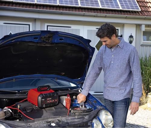 Das Batterie-Ladegerät CE-BC 15 M ist ein intelligentes Ladegerät für 12V-Batterien, Gel-Batterien, AGM, sowie wartungsfreie und -arme Bleisäure-Batterien mit einer maximalen Stromstärke von 15 A. • Der mehrstufige Ladezyklus wird automatisch durch die Mikroprozessorsteuerung überwacht und angepasst. Damit ist es für alle Fahrzeugtypen geeignet, ausdrücklich auch für Saisonfahrzeuge. • Die Steuerungselektronik analysiert Art und Zustand der angeschlossenen Batterie und leitet den optimalen Modus ein. Die Erhaltungsladefunktion schützt die Batterie für einen idealen Ladezustand. • Die Erhaltungsladung entlastet Batteriezellen und verlängert die Nutzungsdauer, der Austausch einer defekten Fahrzeugbatterie wird vorgebeugt . Die Fahrzeuge sind zu Saisonbeginn sofort einsatzbereit. • Mittels Fremdstartfunktion kann die Batterie mit 100 A-Startstrom (max. 5 Sekunden) unterstützen. Durch die vollisolierten Batterieklemmen lässt sich das Batterie-Ladegerät sicher anschließen. • Die LED-Batteriespannungs- und Ladefortschrittsanzeige zeigt auf einen Blick, in welchem Ladezustand sich die Batterie befindet und auf welchen Modus das Ladegerät eingestellt ist. • Das Batterieladegerät von Einhell ist mit automatischem Überladungs-, Kurzschluss- und Verpolungsschutz ausgerüstet: Diese Schutzmechanismen schützen sowohl das Ladegerät, als auch die Batterie.