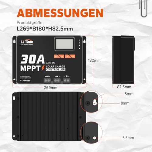 Startseite » Produkte » LiTime 30A MPPT 12V/24V Auto DC Input Solar Laderegler mit Bluetooth-Modul, Parameter einstellbares LCD-Display, LED-Anzeigen Solarpanel Regler, für Lithium Batterie