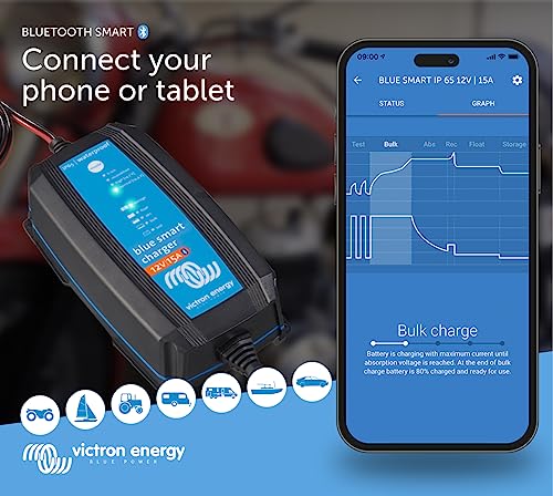 Victron Energy Blue Smart Batterie Ladegerät 12-Volt 15 Ampere 230V – Autobatterie Ladegerät – Batterieerhaltungsgerät und Desulfator – IP65 Geschützt – Bluetooth – CEE 7/17