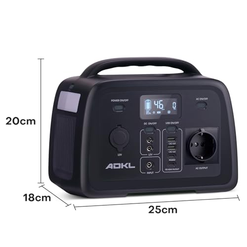 ADKL Tragbare DC Powerbank Powerstation, 320Wh Akku für mehrere Geräte, LiFePO4 Akku, 300W Solargenerator mit 300W AC/PD 60W USB-C Ausgang, Für Camping, Draußen, Reisen, Notfälle.