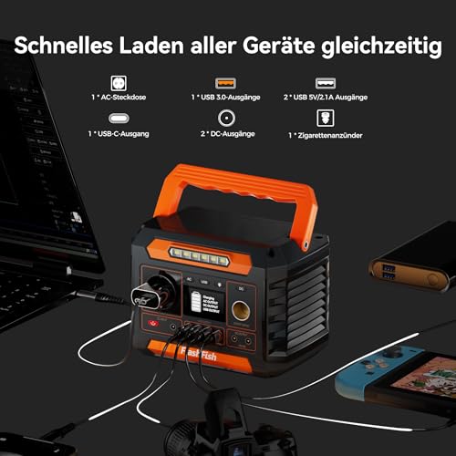 FlashFish P66A Tragbare Powerstation 144.3Wh, 200W Solar Generator mit 230V AC/DC/USB/Typ C/LED-Lichter, Stromgenerator Akku für Camping, Reise, Unterwegs, Notstrom