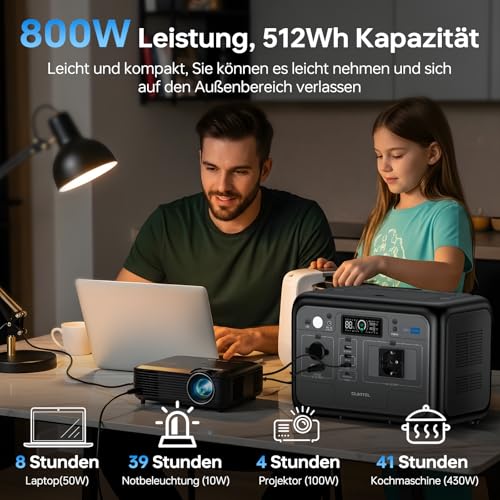 OUKITEL P800E Tragbare Powerstation 800W, Solargenerator Stromspeicher 512Wh LiFePO4 mit 1600W Spitze AC Ausgänge, PD100W Type-C, Schnellladung 0-100% in 1 Stunde, für Reise, Camping, Stromausfall