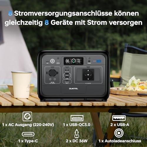 【Leicht und Tragbar】 Der OUKITEL P800E Tragbare Powerstation wiegt nur 6,2 kg, so dass jeder einen tragbaren Generator für Outdoor Abenteuer mitnehmen kann. Ausgestattet mit einem Griff, können Sie diese tragbare Batterie einfach und bequem überall hin mitnehmen, wo Sie Strom benötigen • 【8 Anschlüsse in Einem】 512Wh Li-FePO4 Solargenerator mit 1x 800W (Spitze 1600W) AC Ausgang, PD100W TYPE-C*1 , USB-A 12W*2 (QC3.0), USB-C 18W*1, 5521*2 ,12V Zigarettenanzünderanschluss*1, der problemlos mit allen Arten von Geräten mit hohem Stromverbrauch umgehen kann. • 【500W Schnellladefunktion】OUKITEL P800E Powerstation Energiespeichernetzteil hat eine Schnellladefunktion, 500W Schnellladung kann die Leistung zu 100% in 60 Minuten wiederherstellen, kombiniert mit AC und Solarladung, kann es die Ladeeffizienz maximieren und die Ladezeit verkürzen • 【Zuverlässige und langlebige LiFePO4】Kann bis zu 4000+ Mal für den täglichen Gebrauch wiederverwendet werden, mit einer Lebensdauer von bis zu 10 Jahren. Ob für den Außen oder Heimgebrauch, es kann leicht alle Arten von Geräten mit Strom versorgen, geeignet für Camping, Picknick, Gartenarbeit, und ist eine ideale Ergänzung für die Familie Backup-Stromversorgung • 【10ms Nahtlose Leistungsumschaltung】Im Falle eines Stromausfalls kann das OUKITEL P800E angeschlossene Geräte im UPS-Modus innerhalb von 10ms mit Strom versorgen. wodurch sichergestellt wird, dass kritische Geräte wie CPAP Geräte bei einem Stromausfall unterbrechungsfrei arbeiten können • 【Geräuscharm, umweltfreundlich】 Im Vergleich zu herkömmlichen Generatoren ist die Stromerzeugungsbatterie umweltfreundlicher, erfordert kein Benzin oder andere Brennstoffe, geräuscharmer Betrieb ≤ 29dB, BMS-Batteriemanagementsystem kann Überhitzungsschutz, Kurzschlussschutz, Überstromschutz und Überladeschutz erreichen, um ein Höchstmaß an Sicherheit zu gewährleisten • 【Lieferumfang】OUKITEL P800E Powerstation *1, AC-Kabel*1, MC4-Kabel*1, Handbuch *1, OUKITEL bietet eine dreijährige Garantie. Wenn Sie Fragen haben, wenden Sie sich bitte an uns, wir werden innerhalb von 24 Stunden antworten.