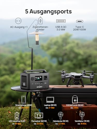 AFERIY 400W Tragbare Powerstation, 256Wh LiFePO4 Batterie, 1,2 Stunde Schnellladung, 5 Anschlüsse, Sinuswellen 230V, USV, Solargenerator für Camping, RV, Outdoors