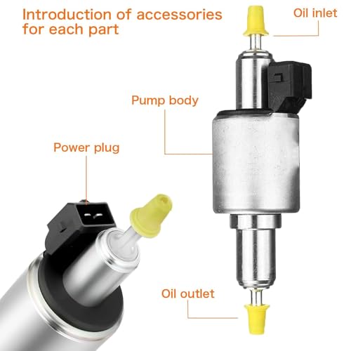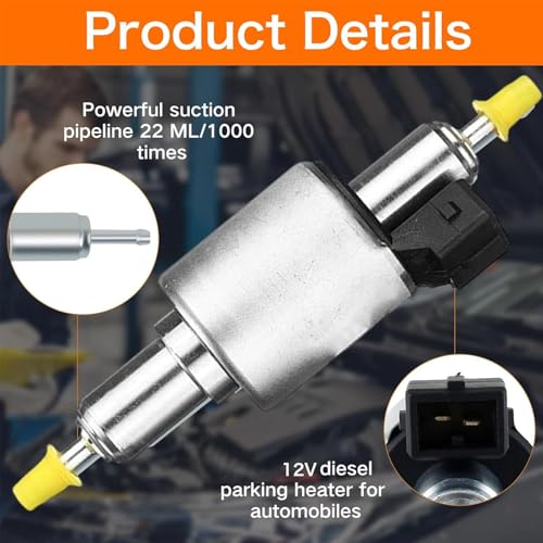 ✅Hochwertiges Material: Die Kraftstoffpumpe der Diesel-Standheizung besteht aus speziellem verschleißfestem Material mit hoher Verarbeitungspräzision, langer Lebensdauer und hoher Präzision Maschine, so dass der Kraftstoff in die Brennkammer gelangt und die Maschine kontinuierlich in Betrieb ist. • ✅Starke Saugleitung 22 ML/1000 Mal: ​​Die Heizöl-Kraftstoffpumpe fördert Kraftstoff durch den Kolben zur Standheizung, mit stärkerer Saugkraft, wodurch die Kraftstoffversorgung des Luftheizgeräts stabiler wird. Ideal für Luft-Diesel-Standheizungen. • ✅Geringerer Geräuschpegel: Unsere Kraftstoffpumpe für Dieselheizungen verfügt über eine geräuscharme Technologie, die Ihrem Fahrzeug einen leiseren Betrieb als die Original-Kraftstoffpumpe ermöglichen kann. Sie bietet die Vorteile eines geringen Geräuschpegels, eines geringen Stromverbrauchs, einer abnehmbaren und waschbaren Kraftstoffpumpe sowie einer präzisen Kraftstoffpumpe. sorgt für eine komfortablere Fahrumgebung • ✅Funktion: Wird zum Transport von Kraftstoff vom Kraftstofftank zur Brennkammer des Heizgeräts verwendet. Es ist ein wichtiger Teil des Heizgeräts und sorgt dafür, dass das Heizgerät effizient und effektiv arbeitet. Einfache Installation, kein Bohren oder Schneiden erforderlich, einfach Plug-and-Play mit der 2-Pin-Halterung. • ✅Weit verbreitet: Die 12-V-Dieselheizungs-Kraftstoffpumpe eignet sich für fast alle Dieselheizungen auf dem Markt, eignet sich für 2 kW-, 3 kW-, 5 kW- und 8 kW-Diesel-Standheizungen und ist ein perfektes Ersatzteil für diese