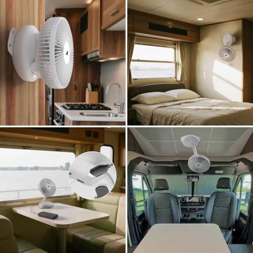 2012 ZOIZ 12V Wohnmobil Wandventilator mit LED Licht – Leiser oszillierender Ventilator für Caravan, Camper, Wohnwagen, Boot, Schlafzimmer & Wohnzimmer – Tragbarer Lüfter für Camping & Vanlife