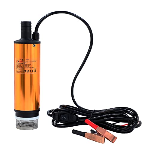 KATSU 12V 51mm Aluminiumlegierung Tauchpumpe Wasser Öl Diesel Kraftstoff Transferpumpe, Öl-Kraftstoff-Diesel-Förderpumpe mit Clips und abnehmbarem Filternetz für Camping, Auto, Caravan, Boot