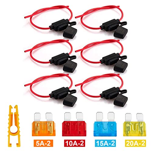 Kundorf Auto Sicherungshalter 6 Stück wasserdichte 16awg KFZ Autosicherungshalter LKW Sicherungshalter standard Flachsicherungshalter mit 8 pcs Flachsicherungen 2*5A 2*10A 2*15A 2*20A