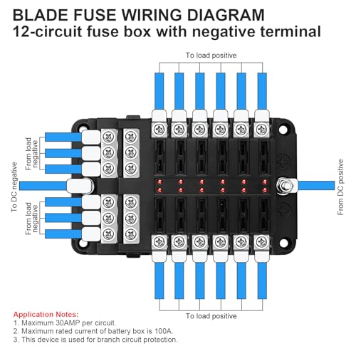 Startseite » Produkte » 12 Fach Flachsicherung, 12V Sicherungshalter KFZ Sicherungskasten, 24 Sicherungen Wasserdichte Sicherungsblock mit LED-Anzeige Positiver Negativer für DC 12V / 24V Auto Boot LKW Van SUV