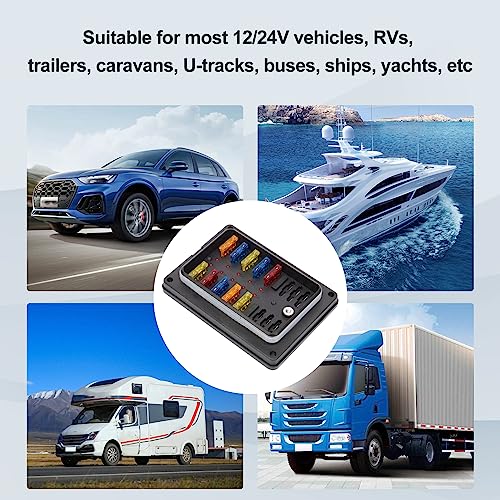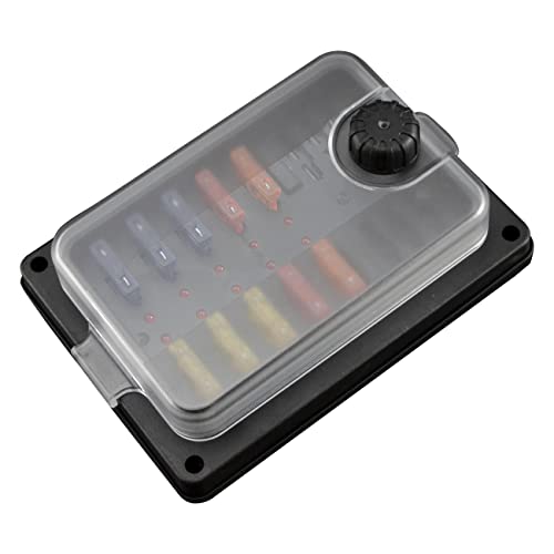 FanPaYY 10 Fach Sicherungshalter Wasserdicht, 12V-32V Flachsicherung Sicherungskasten mit Anzeige negativen Schutzabdeckung Bus für KFZ Boot Wohnmobil Van SUV LKW