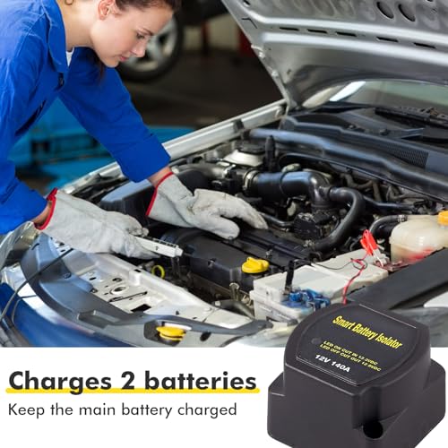 12V/140A BSR Trennrelais, batterie trennrelais 12V, Dual-Batterie-Isolator-Kit, Spannungsempfindliches Relais, 12V Split-Laderelais für Auto, Wohnwagen, Geländewagen, LKW, SUV, Wohnmobil, ATV, Boote