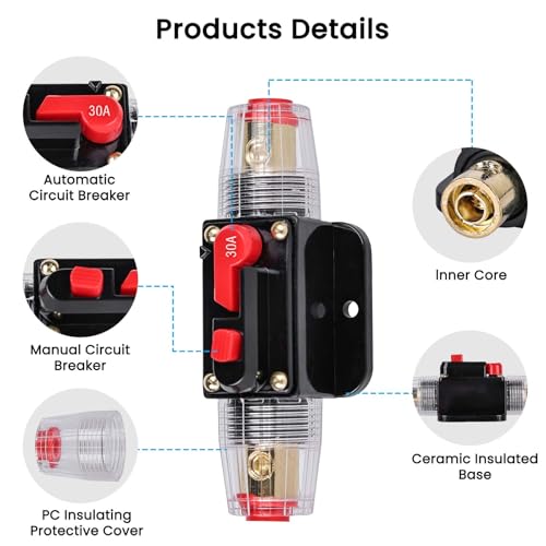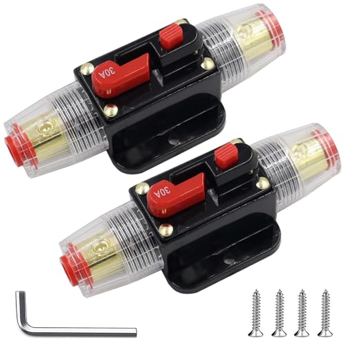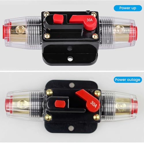 【Hochwertiges Material】Automatiksicherungshalter 12v 24v Hergestellt aus hochwertigem Legierungsmaterial mit guter elektrischer Leitfähigkeit und Beständigkeit gegen hohe Temperaturen und Druck. Die Anschlüsse sind mit einer wasserdichten Gummimanschette versehen und die innenliegenden Schrauben bestehen aus reinem Kupfer, um eine lange Lebensdauer zu gewährleisten. Produkt enthält: 2* 30A KFZ Sicherungshalter, 4*schrauben, 1*Schraubenschlüssel. • 【Überspannungsschutz】30A, 12V 24V DC | Der Automatiksicherungshalter 12v 24v bietet kritischen Schutz für Ihr System, wenn es überlastet ist. Im Falle eines Kurzschlusses löst der 30A KFZ Sicherungshalter sofort aus, der lange Griff unterbricht automatisch die Stromzufuhr und schützt so Ihre Geräte. Wenn der Fehler behoben ist, kann der Sicherungshalter wieder verwendet werden, indem der lange Griff wieder in seine Position gedrückt wird. • 【Multifunktion】Dieser Leistungsschalter kann den Verstärker vor Schäden durch Überlaststrom oder -spannung schützen. In der Zwischenzeit kann die Stromversorgung auch geschützt werden, um Batterierisse und Explosionen durch Kurzschluss zu vermeiden. Spezifikation: 30A, kompatibel mit allen 12V/24V Systemen. Verwendung anstelle eines Inline-Sicherungshalters und der einzigartige Druckknopf-Reset kann auch als Notausschalter verwendet werden. • 【Einfach zu bedienen】Mit Automatiksicherungshalter 12v 24v und Arm muss der Leistungsschalter die Inline-Sicherung nicht ersetzen. Der einzigartige Druckknopf-Reset kann auch als Schalter verwendet werden,um den Stromkreis zu unterbrechen.Manuelles Zurücksetzen. Drücken Sie einfach die Taste und der Stromkreis wird geschlossen/geöffnet.Das Netzkabel muss nicht zerlegt werden. Schraubklemmen halten die Kabel sicher an Ort. • 【Breites Anwendungsspektrum】Car Audio Sicherungskasten Spannung 12V-24V DC. Wird typischerweise in Hilfs- und Zubehörkreisen für Lastkraftwagen, Busse, Wohnmobile, ATV-Winden und Schiffsanwendungen verwendet. 30A KFZ Sicherungshalter Wird auch in Batterieladungen und DC-Tonverstärkersystemen verwendet.