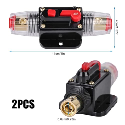Vaileal 2 Stück 30A KFZ Sicherungshalter: Automatiksicherungshalter 12v 24v, Auto Schutzschalter mit Manuellem Reset für Auto-Marine-Audiosystem-Schutz