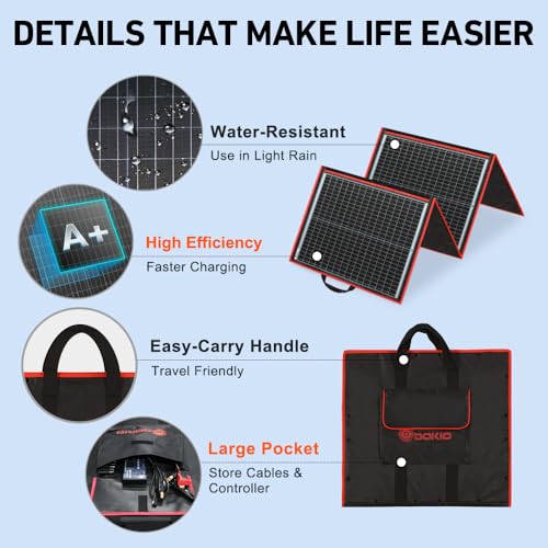 DOKIO Solarpanel Faltbar 160W Monokristalline Tragbare Solarmodul Camping Solaranlage Komplettset (Solarladeregler+PV Kabel+5 DC Adapter+2 USB Ausgang)
