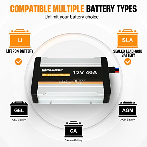 ECO-WORTHY 12V 40A DC to DC Battery Charger with MPPT On-Board Solar Battery Charger Lithium LiFePO4 Battery Gel AGM, Multi-Stage Charging for Solar Panel Lichtmaschine in RVs Trailer